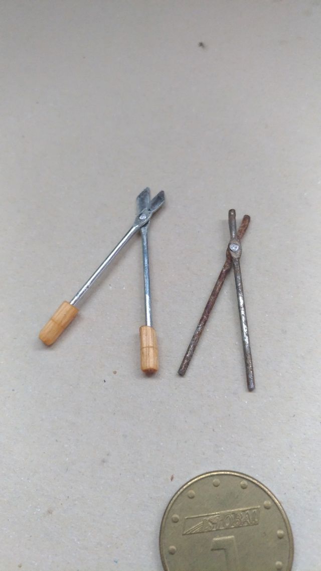 Detalles del productoLa figura del hombre mide 12cm(no incluída) Tijeras y tenazas de madera y metal en miniatura , abren un poco pero no cierran más , desconozco la escala , más en mi perfil