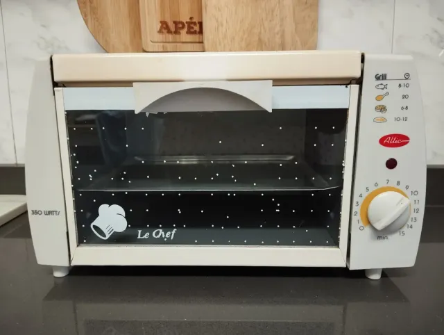 Detalles del productoMini horno- grill eléctrico para calentar pan, curasanes, o lo que quieras.