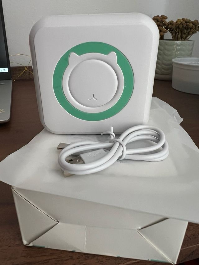Mini impresora portatil Incluye royo para imprimir Se recarga con USB Admite royo adhesivo para hacer pegatinas con tus fotos Color verde agua Nuevo sin uso