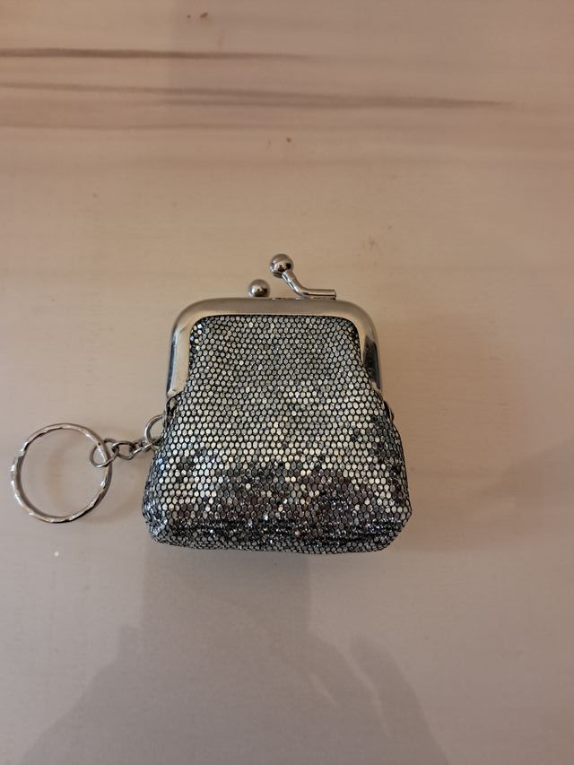 MINI MONEDERO PLATEADO CON LENTEJUELAS PARA MONEDA