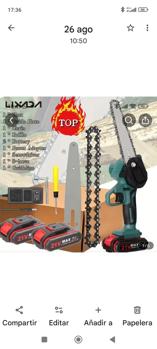 Detalles del productoMini motosierra a batería LIXADA, ideal para trabajos de poda y corte.