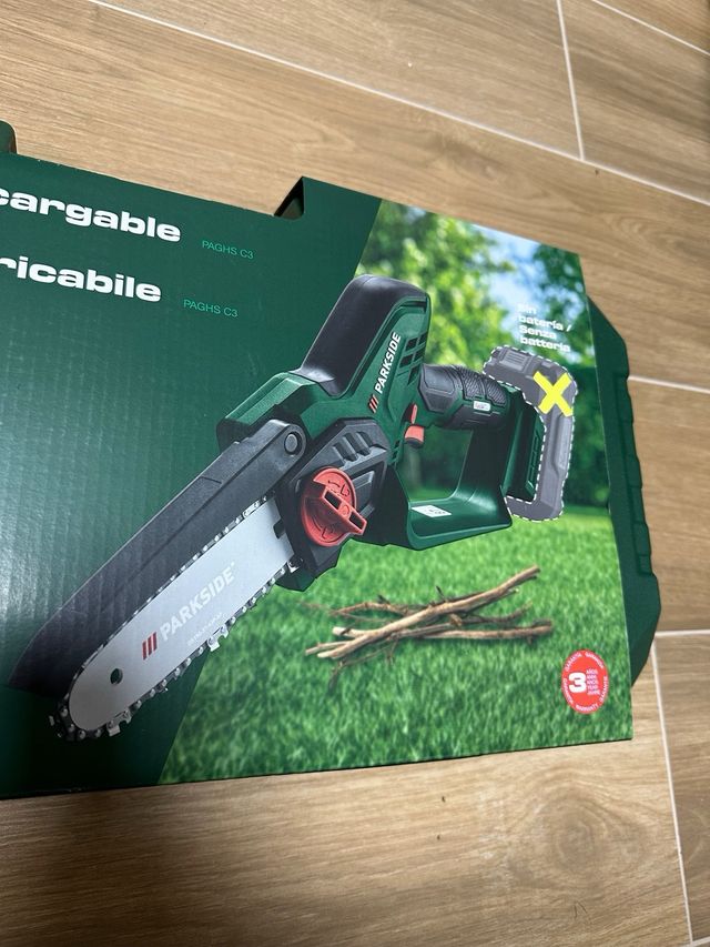 Detalles del productoMini motosierra recargable Parkside de 20V.