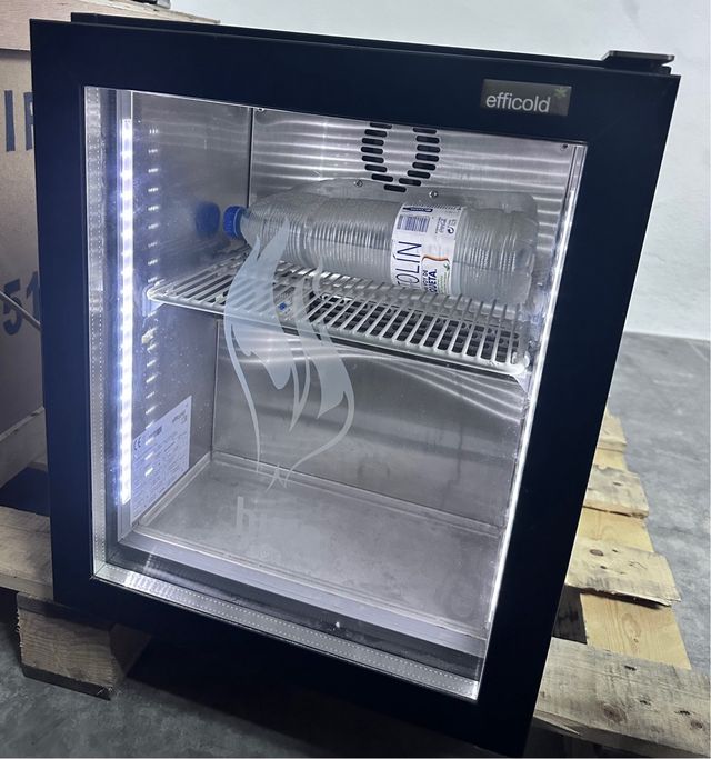 Detalles del productoMini nevera EffiCold con puerta de cristal y luz LED interior. Ideal para bebidas.