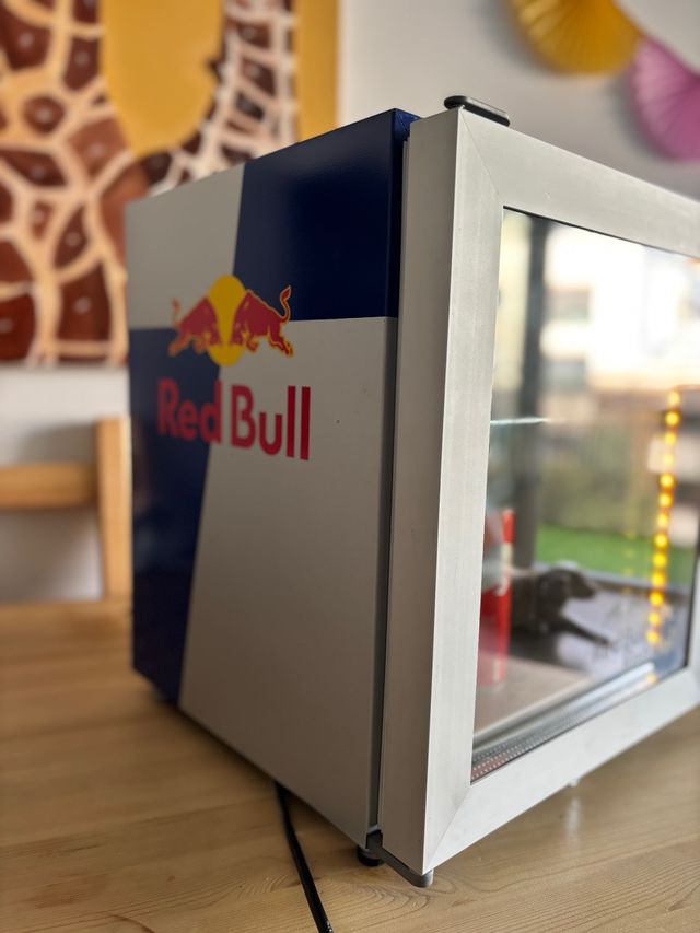 En venta, una mini nevera con diseño Red Bull. Está en muy buen estado.