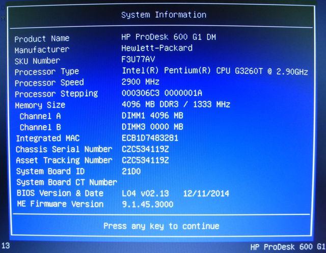 Mini PC Hewlett Packard HP ProDesk 600 G1-DM