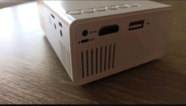 Detalles del productoProyector mini, perfecto para habitacion o distancia corta. Posee altavoz incorporado. Incluye cable de alimentación, entrada de USB, HDMI, microSD y de auriculares. Compatible con FireStick
