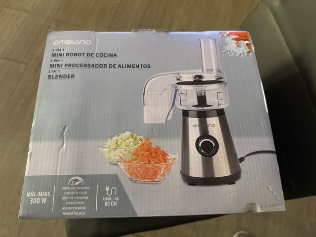 Mini robot de cocina Ambiano, modelo 3 en 1. - Potencia máxima de 300 W. - 2 niveles de velocidad y función pulso. - Longitud aproximada del cable: 80 cm.