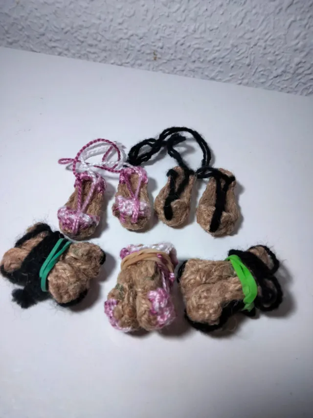 Conjunto de mini zapatitos o "esparteñas" hechas a mano, perfectos como detalle o adorno para colgar.