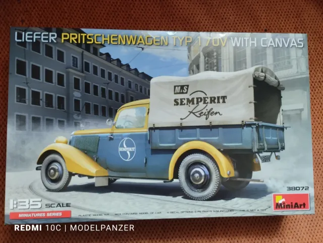 Detalles del productoMaqueta de plástico a escala 1:35 del camión Liefer Pritschenwagen Typ 170V con lona.