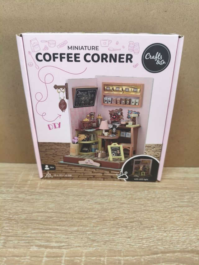 Detalles del productoEsquina de café en miniatura para montar, ¡ideal para los amantes del bricolaje! Incluye luces LED para un toque especial. El kit está prácticamente nuevo y sin abrir.