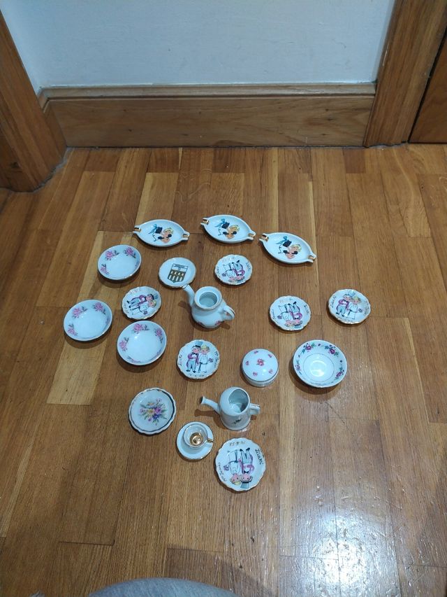 Detalles del productoConjunto de piezas de porcelana en miniatura, ideal para coleccionistas o decoración. Incluye caja