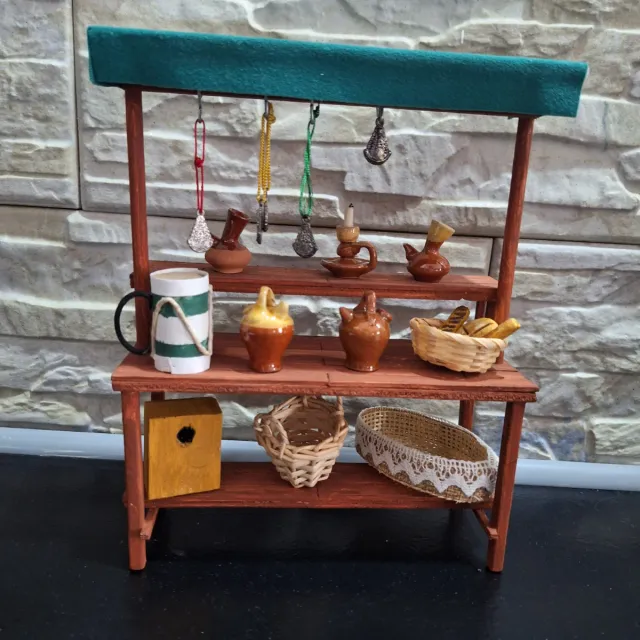Detalles del productoMiniatura de un puesto con varios artículos.