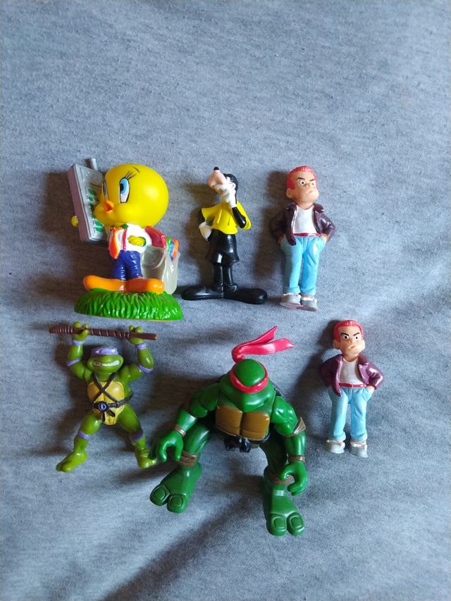 la otra tortuga ninja 8 cm y Goofy de PVC, de unos 7 cm.