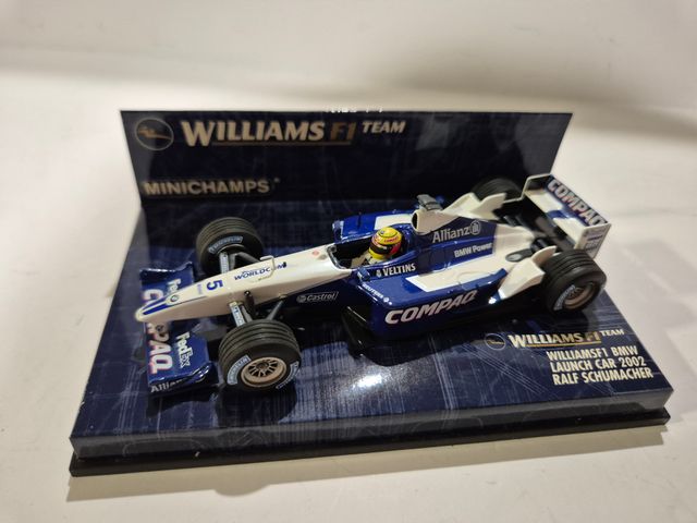 Detalles del productoRéplica a escala 1:43 del Williams BMW F1 de lanzamiento de 2002, pilotado por Ralf Schumacher.