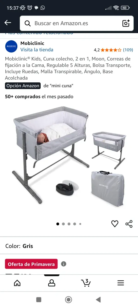 Detalles del productoMinicuna colecho Mobiclinic modelo Moon en color gris. Ideal para tener al bebé cerca durante la noche.