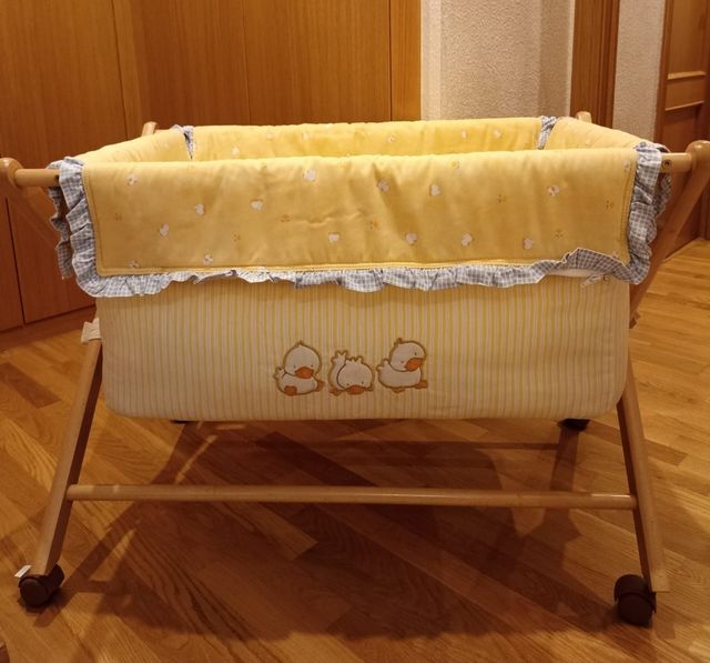 Minicuna bebe plegable de madera, incluye tabla, colchón y edredón con almohada. Esta nueva Medidas 90X 60cm.