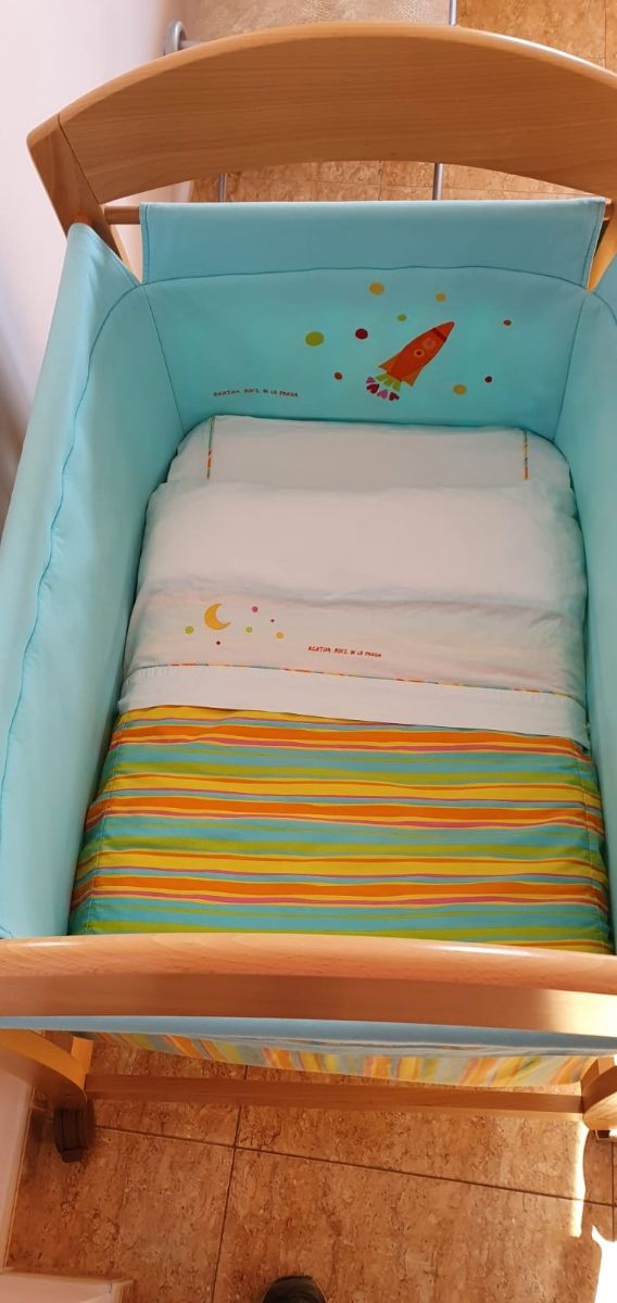 Minicuna Agatha Ruiz de la Prada. Cuidada, en buena estado. Incluye: colchón y 2 juegos de sábanas.