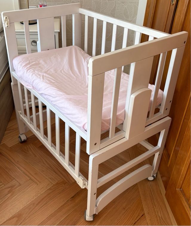 Detalles del productoMinicuna Allegra blanca y con ruedas para facilitar su movilidad. Tiene alguna marca de uso (ver en fotos) pero por lo demás está en perfecto estado.