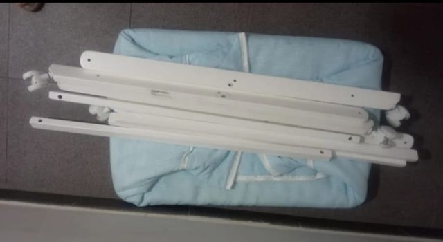Detalles del productoMinicuna azul para bebé. Está en buen estado. Es parecida a la de la foto. No es el mismo tejido pero la forma de la estructura es igual.