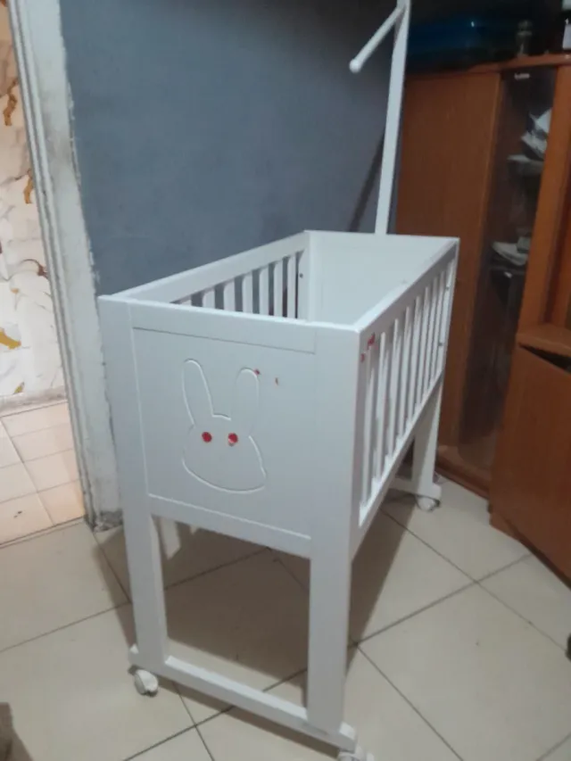 Detalles del productoMinicuna blanca con un diseño tierno de conejito en uno de sus laterales. Ideal para los primeros meses del bebé.