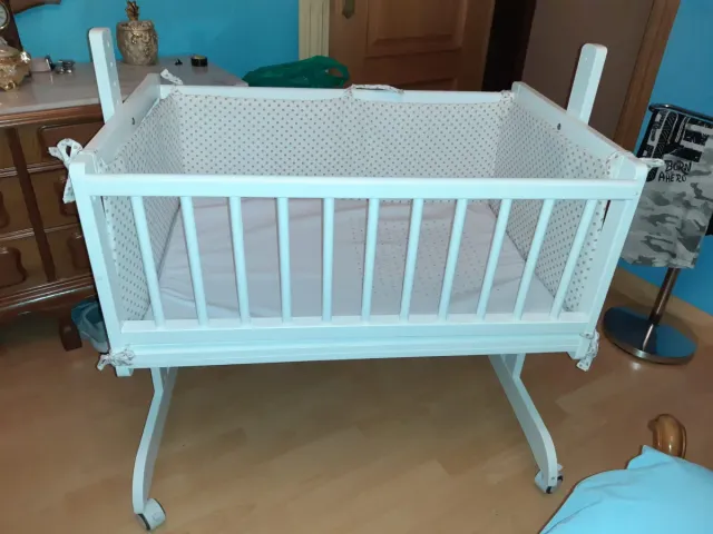 Minicuna blanca con ruedas