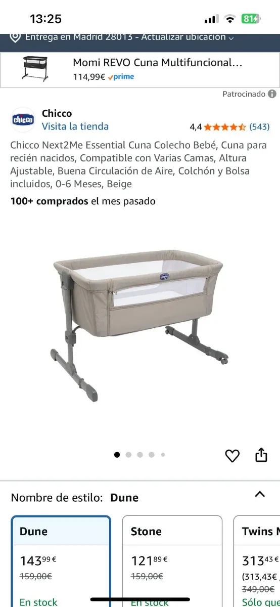 Detalles del productoMinicuna colecho Chicco Next2Me Essential en color beige. Ideal para recién nacidos.