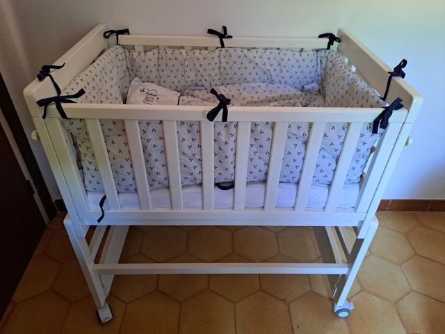 Detalles del productoPreciosa minicuna de COLECHO Allegra, ideal para los primeros meses del bebé. Se puede poner como cuna normal también cerrada. Incluye dos juegos de cama con telas acolchadas laterales para proteger al bebé, nórdico y colchón. Tiene 5 posiciones: mini cuna, mini cuna colecha,guarda objetos, escritorio y banco para cuando crezca el bebé. Se encuentra en muy buen estado.