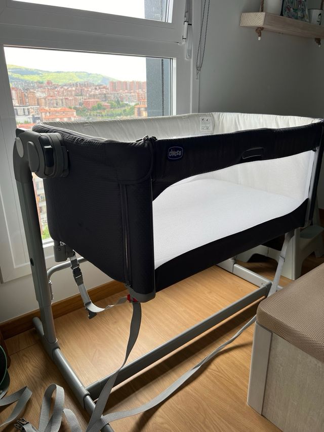 Detalles del productoMini cuna de colecho desde el nacimiento hasta los 12 meses para tener a tu bebe a tu lado de una forma segura y practica. Panel deslizante, para abrir y cerrar la barrera con una sola mano. Sistema Balancin, podras mecer al bebe con un suave movimiento. Incluye colchon con superficie superior de malla 3D para mejorar el flujo de aire y reducir la sudoracion del bebe. Universal, compatible con diferentes camas gracias a 11 ajustes de altura e instalacion incluso en camas con canapes o cajoneras gracias a sus patas retractiles. Con ruedas, sus 4 patas cuentan con ruedas con freno para poder desplazar la mini cuna facilmente. Medidas del producto