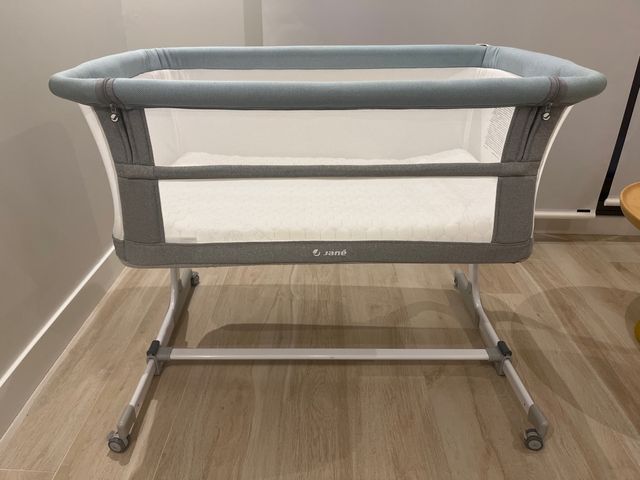 Detalles del productoMinicuna colecho de la marca Jane (Baby side) color gris y azul, vendemos con colchón Ecus antiplagio y antiahogo (comprado a parte) de mucha mayor calidad que el que viene con la cuna original. Diseñada para colocar al lado de la cama y hacer colecho para disfrutar con tu hijo/a cómodamente. Excelentes condiciones.