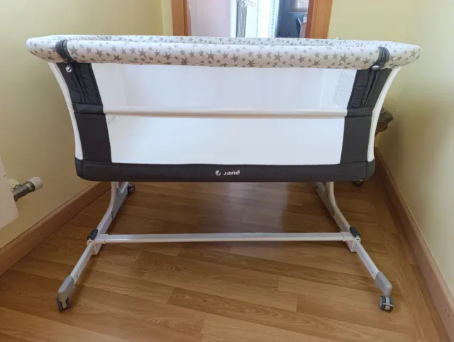 Detalles del productoMinicuna de colecho de la marca Jane, modelo Babyside Star en tonos grises y blancos. Diseñada para facilitar el descanso compartido.