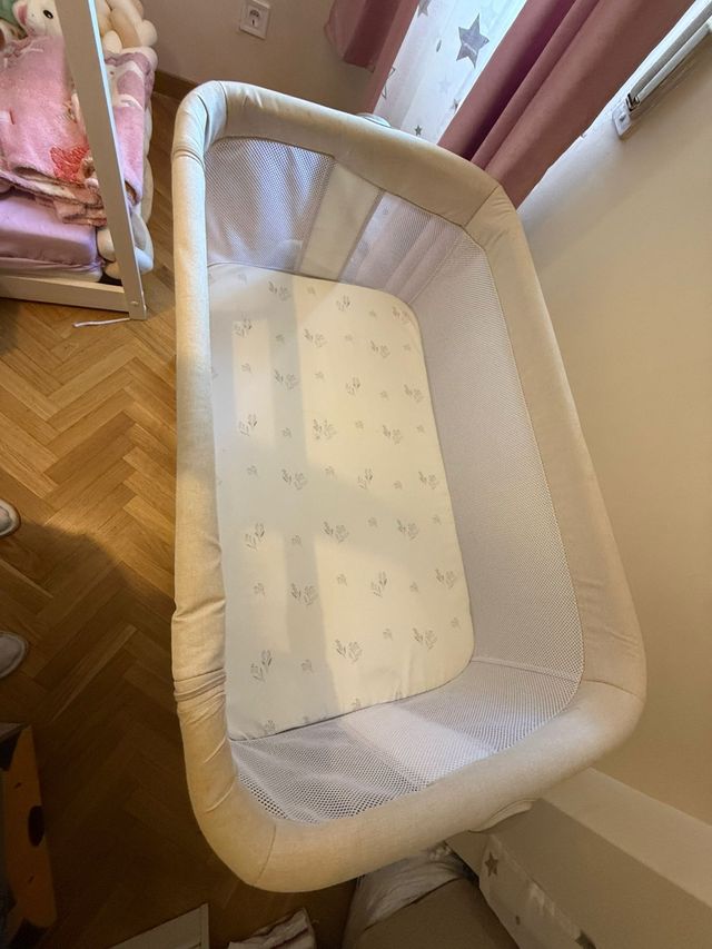 Detalles del productoMinicuna colecho Lionelo en perfecto estado. Es de color beige y tiene un diseño delicado.