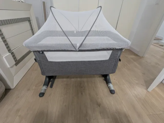 -Vendo esta completa y versátil minicuna colecho en gris jaspeado de la marca MS Teeny, ideal para los primeros meses de vida del bebé. Se incluye un colchón de alta gama y la mosquitera original.