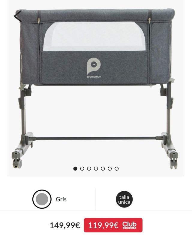 Detalles del productoMinicuna de colecho de la marca Premaman en color gris.