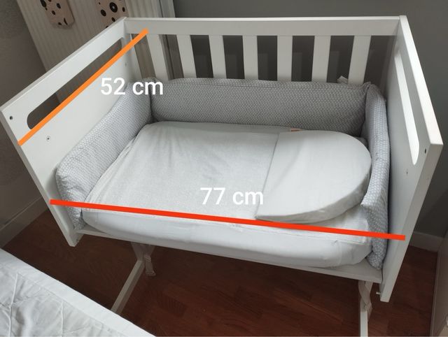 Detalles del productoSe vende Minicuna de colecho de la marca Minicuna en perfecto estado. Se convierte en escritorio cuando ya no la necesites para el bebé. Se regalan chinchoneras, colcha y sábanas (algunas sin estrenar)