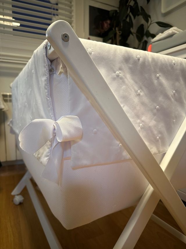 Detalles del productoMinicuna de madera con un diseño clásico y elegante.