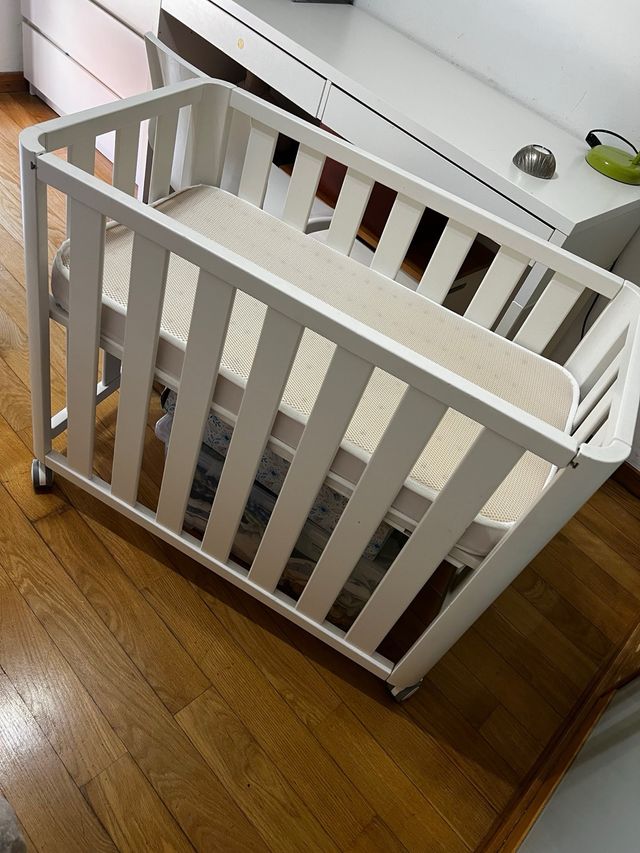 Detalles del productoMinicuna Doco 50 * 90 en excelente estado, lista para usar. Muy poco uso. Apenas dos pequeñas marcas en el lateral que se abre.