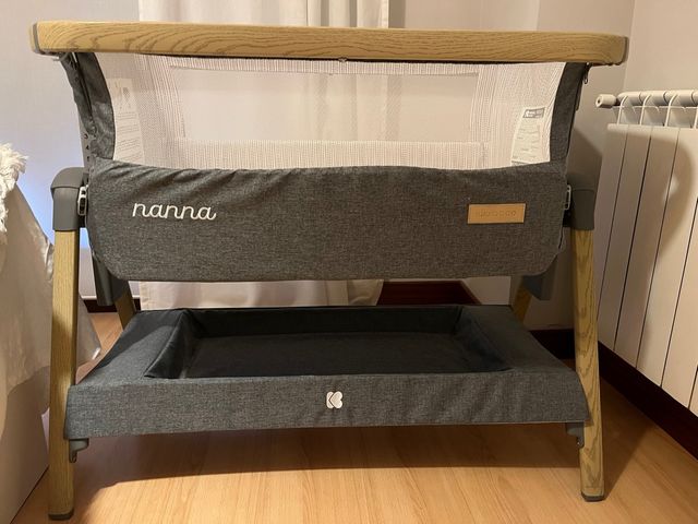 Detalles del productocuna de colecho Kikkaboo Nanna en color gris y madera. Está en muy buen estado.