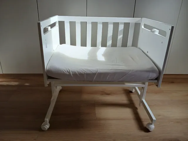 Sin apenas uso, se convierte en escritorio, en baúl para juguetes/ peluches y sofa. Tiene 7 alturas de colecho y el lateral es desmontable. Las 4 ruedas tienen freno.