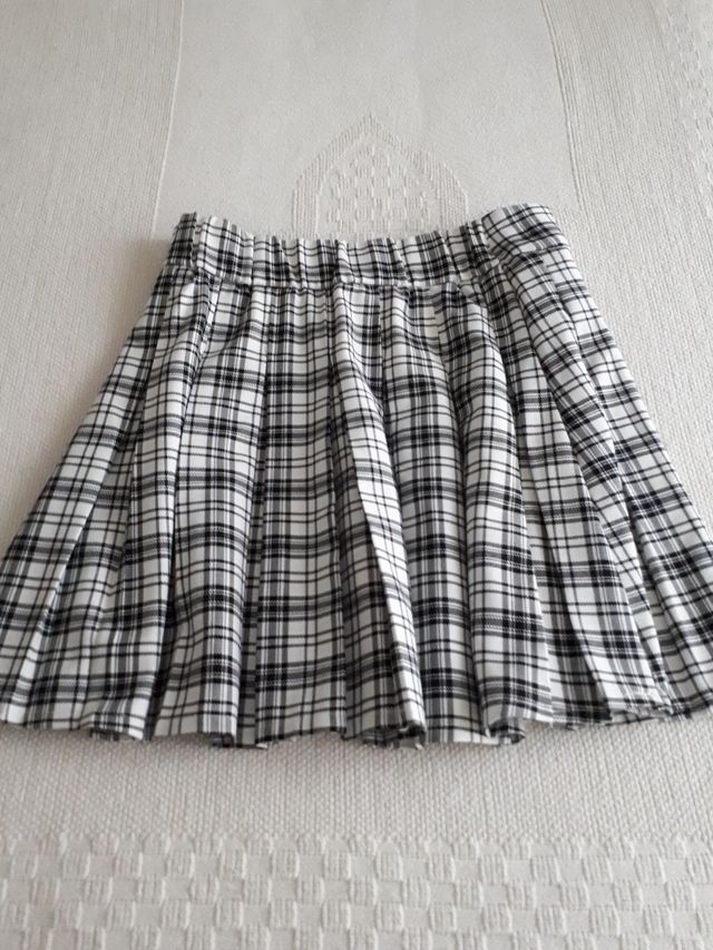 Minifalda plisada talla XS de Stradivarius, cuadros blanco y negro. No tiene etiqueta pero está sin estrenar