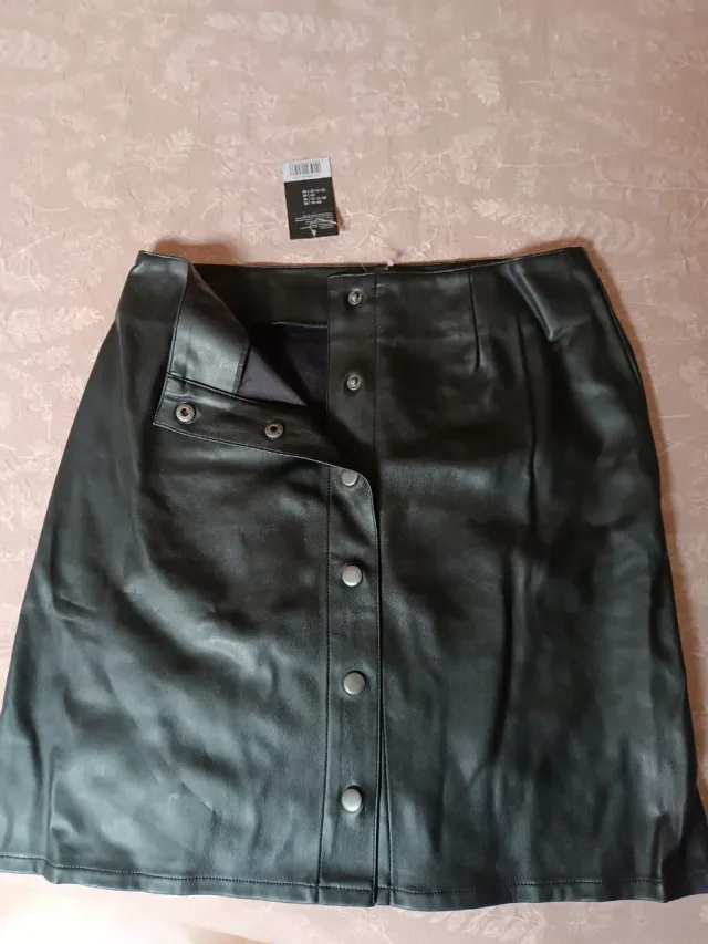 Minifalda cuero negra botones
