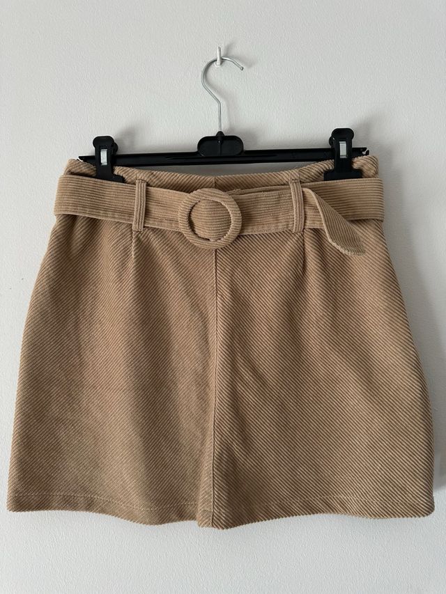 Minifalda de pana marrón con cinturón