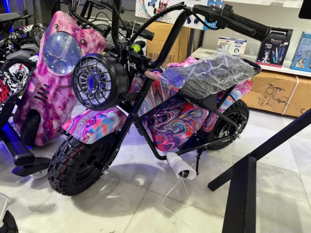 Detalles del productoMinimoto eléctrica con un diseño único y llamativo. Ideal para desplazamientos urbanos o de ocio.