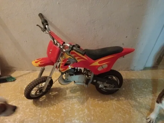Detalles del productoMinimoto de estilo motocross, ideal para niños. Presenta un diseño llamativo con detalles de llamas.