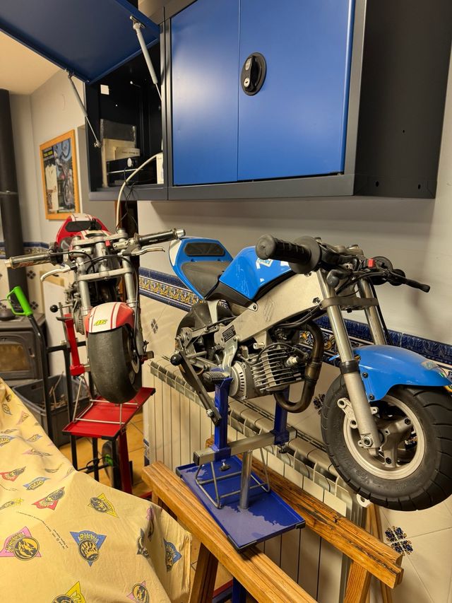 - Los dos caballetes para las minimotos que se ven en las fotos.
