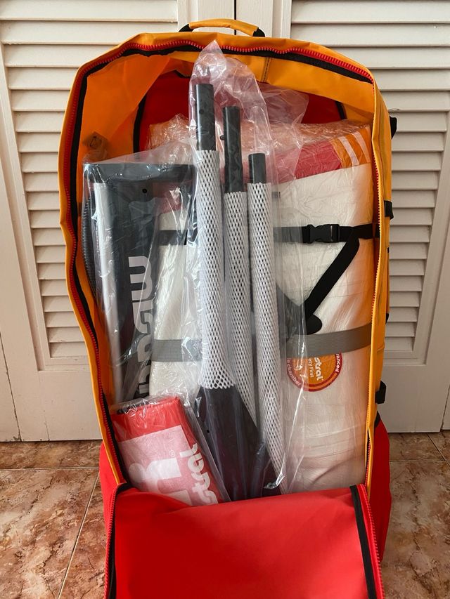 Accesorios: pala, inflador doble, mochila, bolsa estanca de aprox. 10 L, cuerda de seguridad, kit de reparación y aleta.