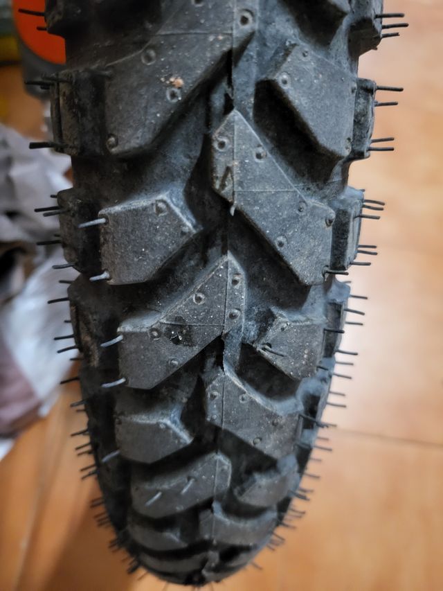 vendo juego de ruedas mixtas Mitas enduro E-07 para llanta delantera 90/90/21" y trasera 140/18" tienen 100 km.