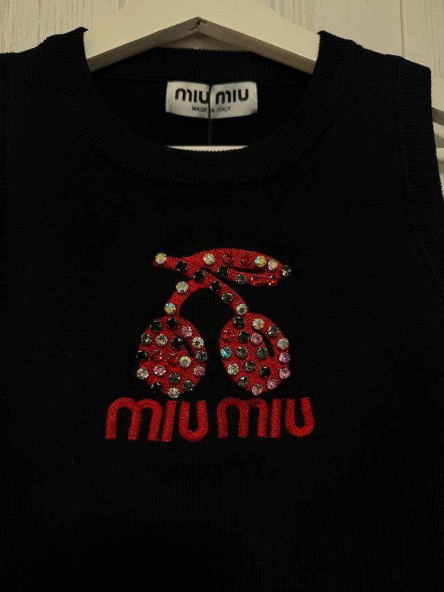 Miu Miu Top Negro con Cerezas Brillantes