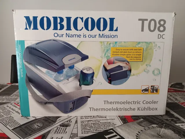 Nevera portátil Mobicool T08, ideal para mantener tus bebidas frías y viajes.