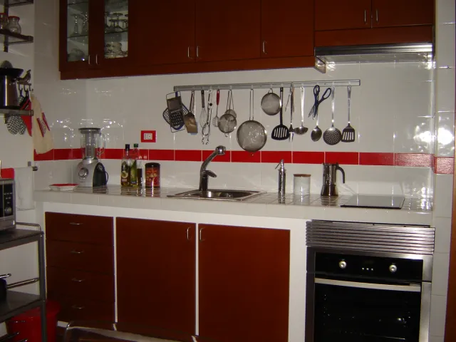 Detalles del productoMobiliario de cocina que consta de los módulos superiores tal y como se ve en la foto con dos puertas centrales para la vajilla, un compartimento a la derecha con 3 estantes, el extractor de humos con un altillo de 2 puertas y las 2 puertas de la izquierda acristaladas con estantes de cristal.