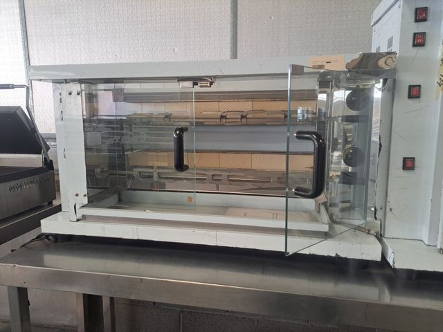Detalles del productomaquinaria de hostelería, mobiliario de hosteleria, pregunte sin compromiso, al precio a de sumarle iva y el transporte, asador de pollos de 2 espadas a gas, medidas 1110X420X615MM, capacidad -10-12 PCS potencia 13.000KAL/H, vitrina de tapas, bajo mostrador, murales, freidora, plancha, embutidora, cortadora, nevera expositora, nevera para bebida, vitrina pastelera, vitrina expositora, vitrina carnicera, envasadora, congelador, lavavajilla, lavavasos vitrina de tapas, cámara frigorífica, campana industrial, campana extractora, sistema contra incendios, mesa de trabajo, mesa refrigerada, bajo mostrador